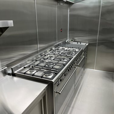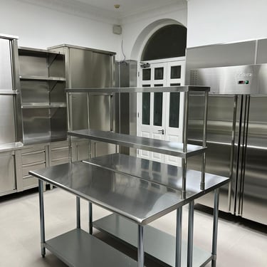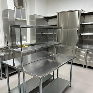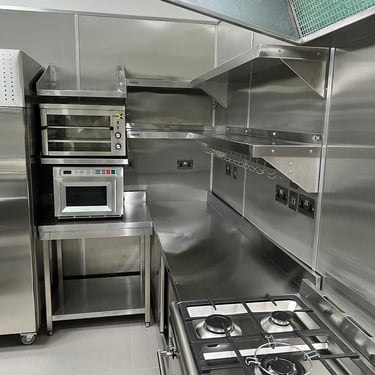 Converting a standard residential kitchen into a fully equipped commercial-grade culinary space designed to serve multiple flats within the building. The kitchen features a stainless steel backsplash extending seamlessly across all walls, complemented by stainless steel facias for sockets, switches, and fittings. Every element was designed for durability, hygiene, and efficiency, while maximizing storage capacity to support high-volume use. The result is a sleek, functional, and resilient kitchen that combines professional performance with refined design.